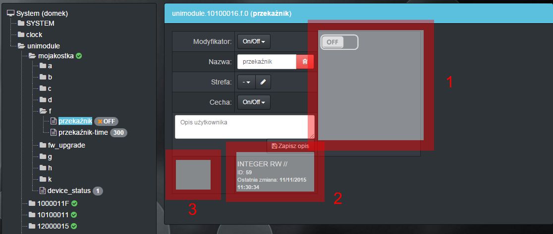 w tym wypadku, włączenie przycisku on/off spowoduje włączenie fizycznego przekaźnika na urządzeniu