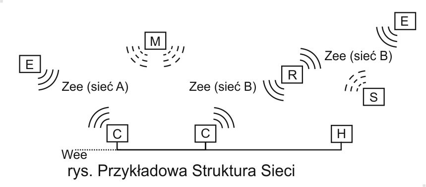 C : Koordynator - przewodowe, podpięte do magistrali Wee i tworzące swoją własną sieć radiową